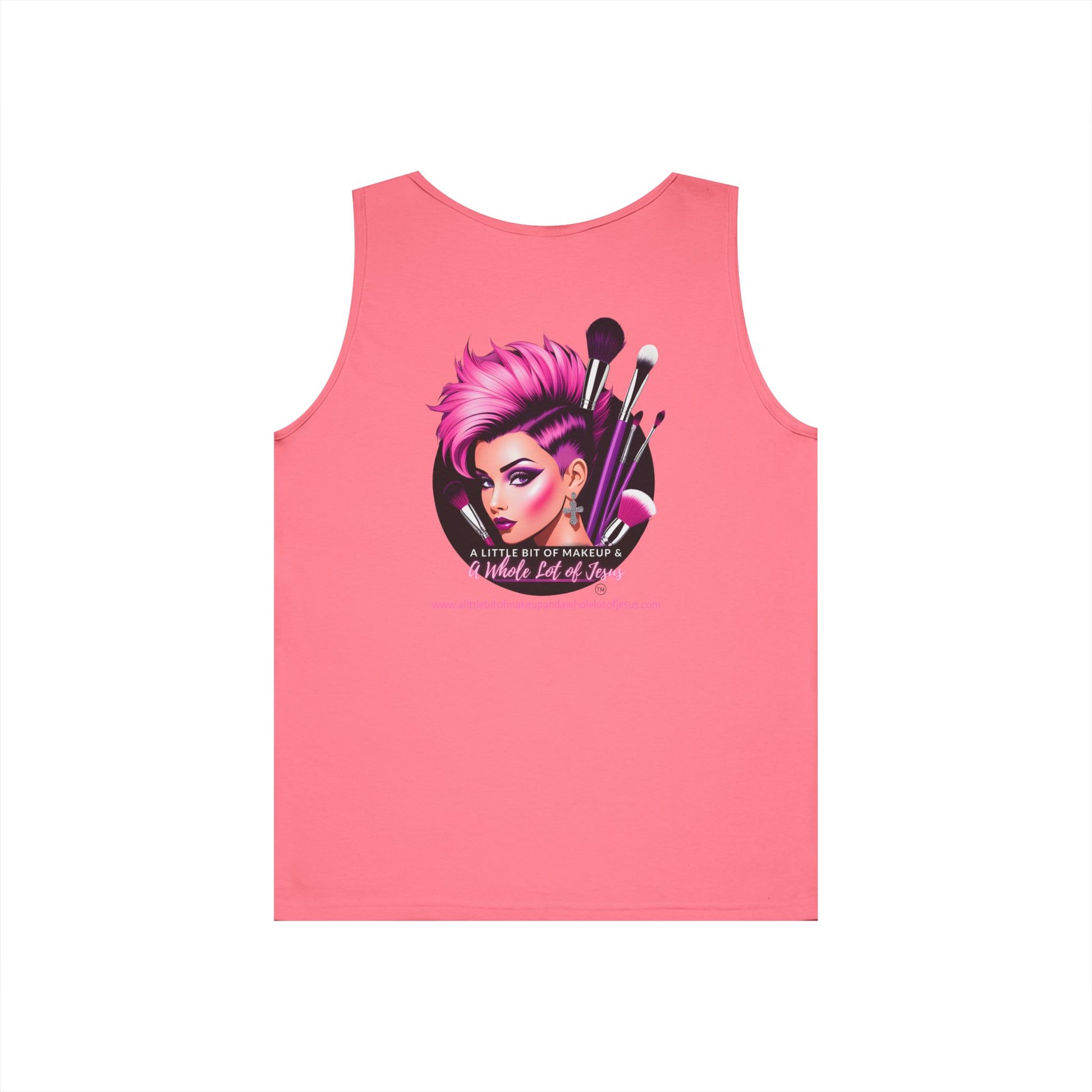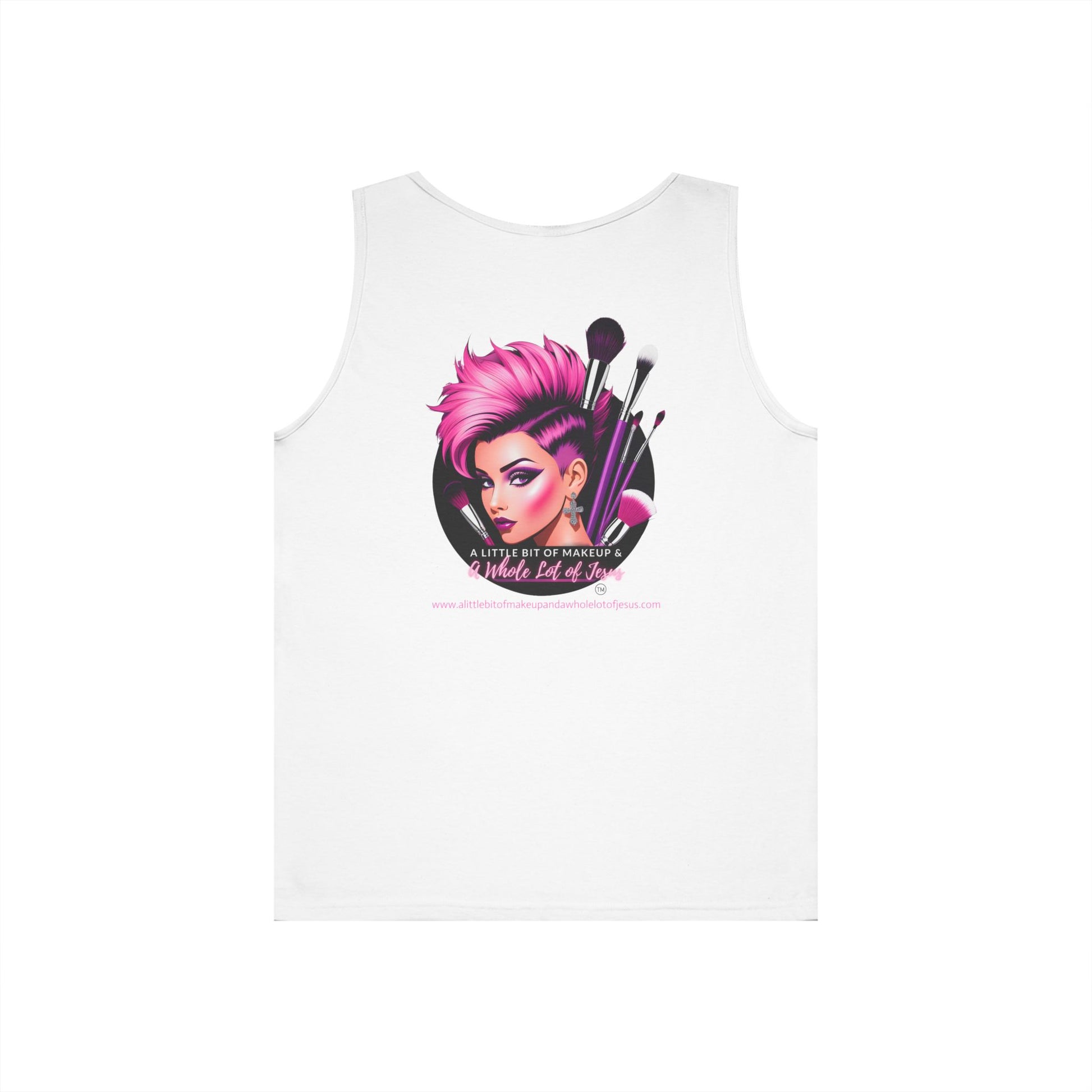 Celebrate faith and beauty with the A Little Bit of Makeup & A Whole Lot of Jesus Unisex Heavy Cotton Tank Top, inspired by the popular live podcast! Designed for women who love beauty inside and out, this tank top is perfect for putting on your makeup, the gym, casual outings, or layering. Featuring soft, preshrunk cotton fabric, it’s as comfortable as it is stylish. With its classic fit and uplifting message, this tank makes an inspiring addition to your wardrobe.
