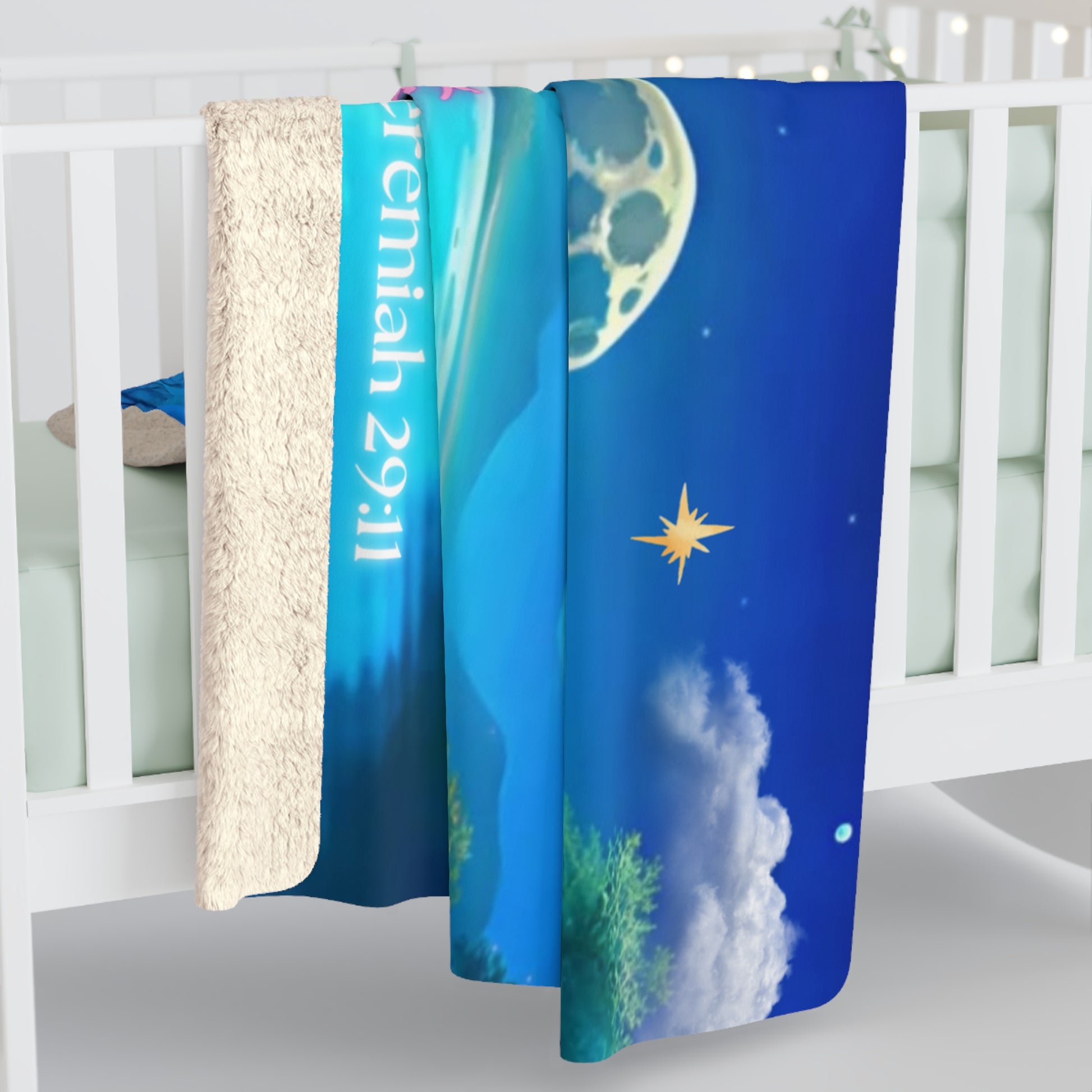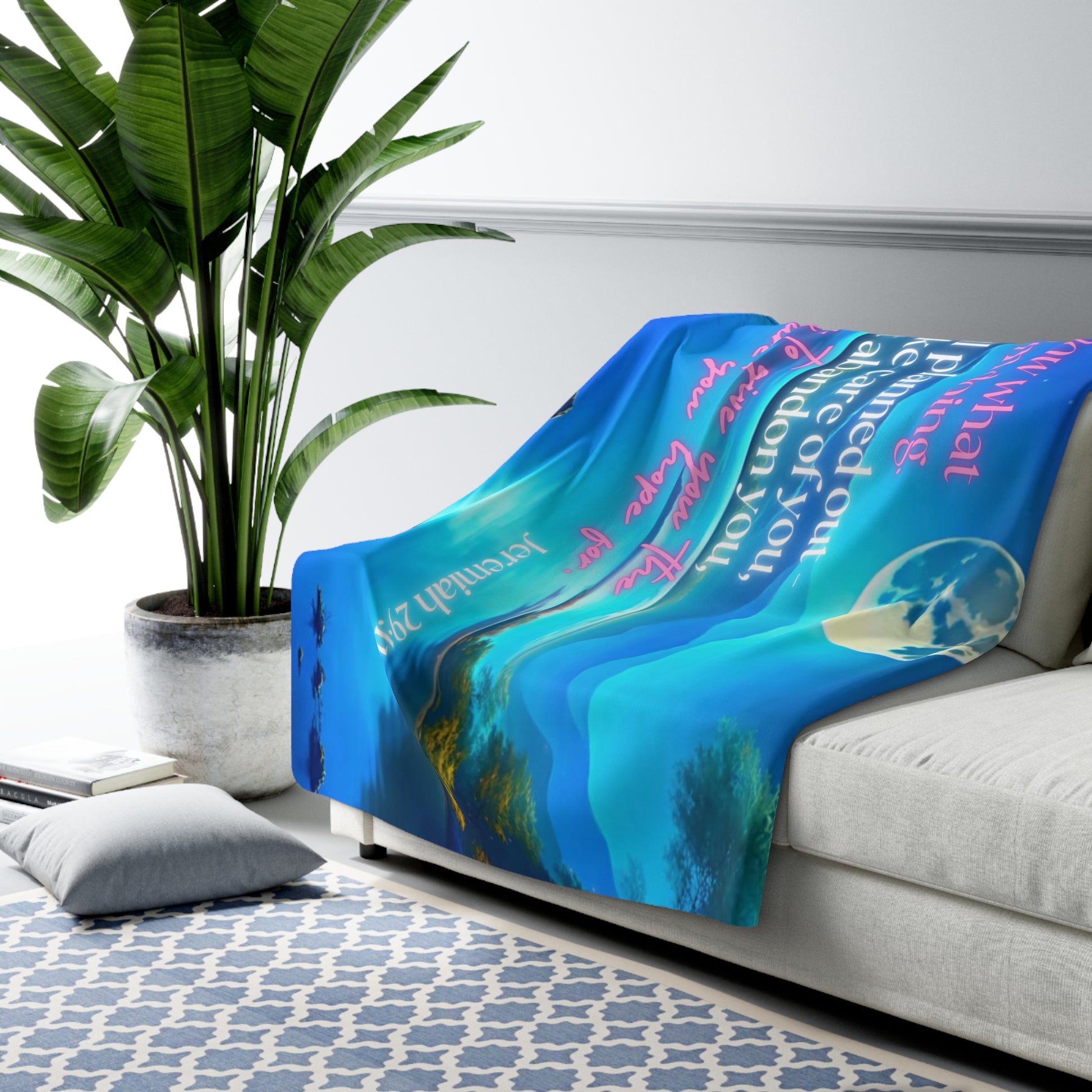 Stay cozy and inspired with the Imagine-Believe-Achieve Throw Blanket, featuring the powerful words of Jeremiah 29:11:
